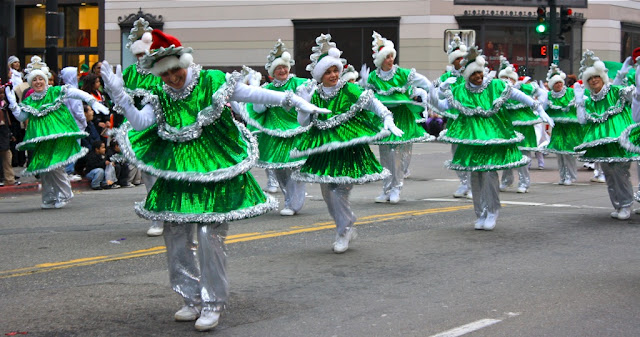 Saturday was the 11th annual Children's Christmas Parade downtown.  The stars of the show, besides Santa himself, are the Tap Dancing Christmas Trees.  They tap the entire route of the parade from 11th to 20th Street.   Even though they must have been chilled to the bone, they looked like they were having fun.  The gray and cold of the day kind of vanished as they performed.  Hmm, I think I want to be a tapping tree when I grow up.