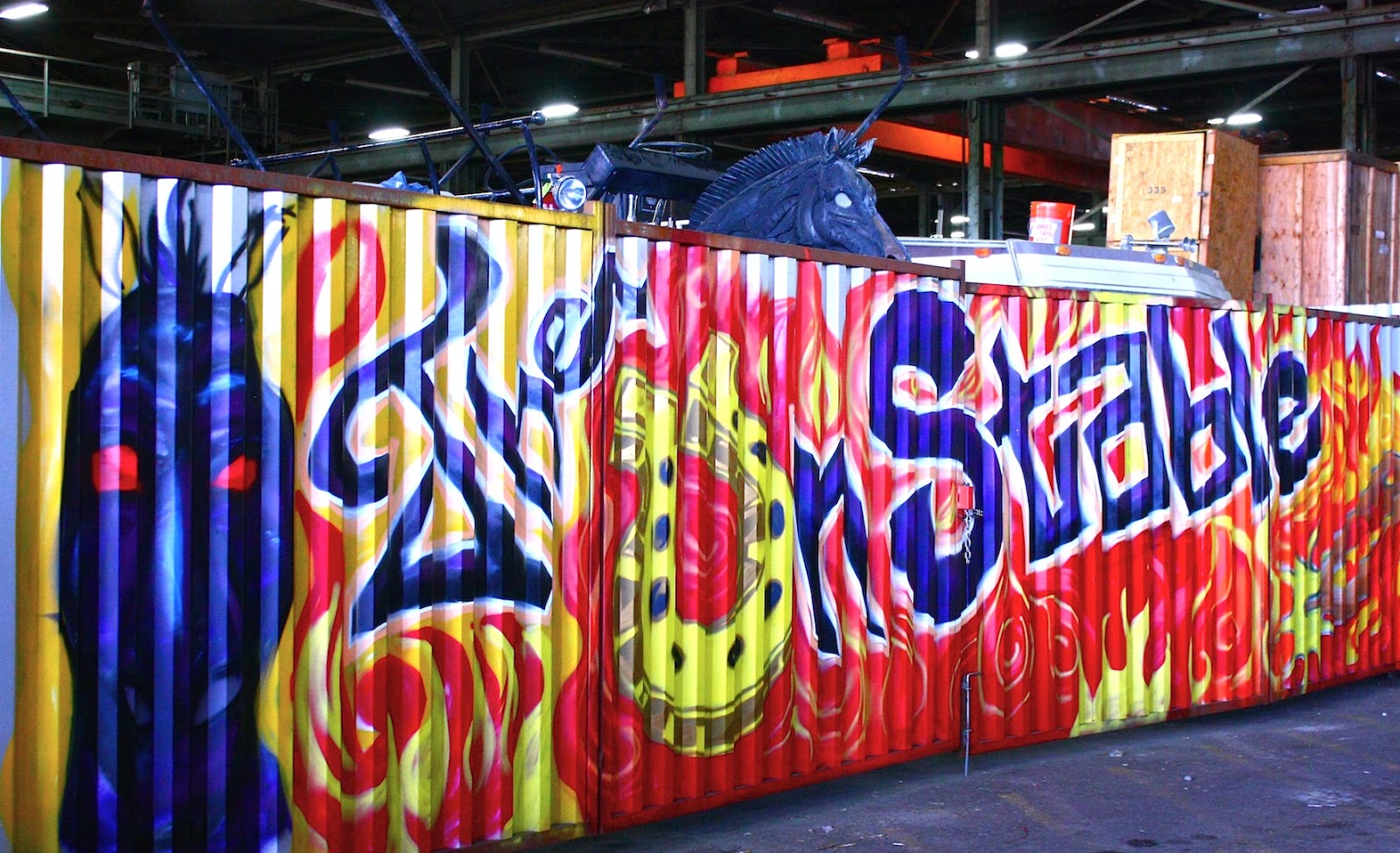 Found at American Steel, the artist collective in West Oakland. I imagine that scary looking unicorn behind the fence has fiery eyes when it visits Burning Man.
