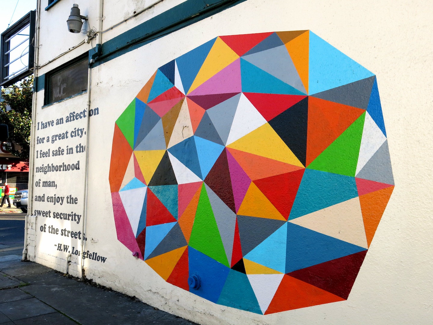 While out and about in the Longfellow neighborhood of West Oakland I found this newish mural sponsored by the local community association. It was done in 2015 by Jason Pyrzynski, who is originally from Chicago but now lives in Oakland. The poem celebrates an openness to life with one's fellow man. A good thought to begin the new year.