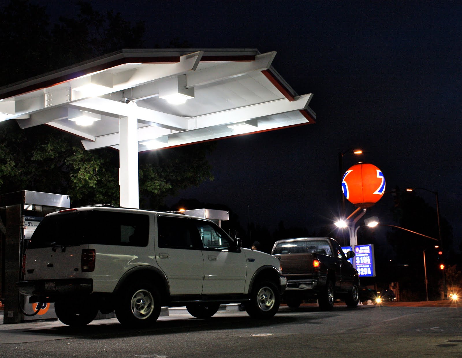 So is the huge neon sign that anchors the parking lot.  This local chain has at least four spots in Oakland that I'm aware of.  I previously posted the one on Telegraph Avenue in the Uptown area.  Interestingly, each spot has slightly different architecture and they are in varying states of repair.  But all shout "retro."  You expect waitresses on roller skates to come to your car to take orders.